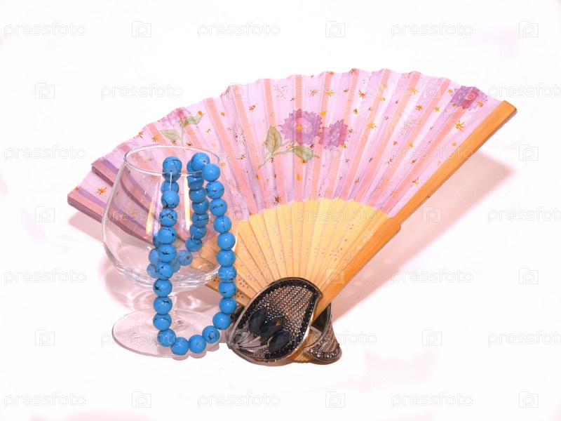 Веер, бокал, бусы и браслет
