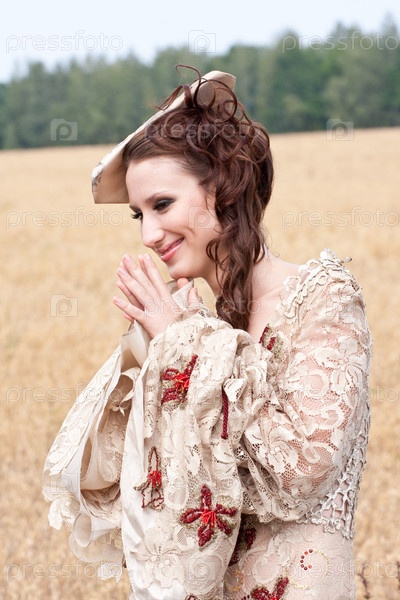 Девушка в одежде 18 века в поле