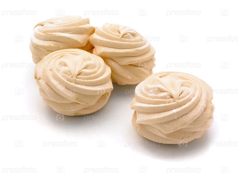 Зефир, посыпанный сахарной пудрой, на белом фоне