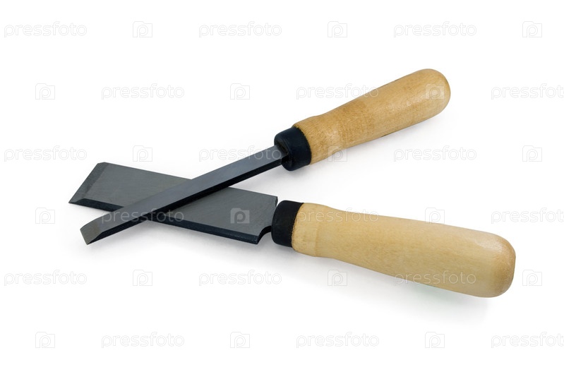 Два долота с деревянными ручками, изолированные на белом фоне