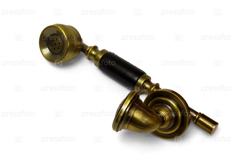 Старинная телефонная трубка из бронзы и кожи, изолирована на белом