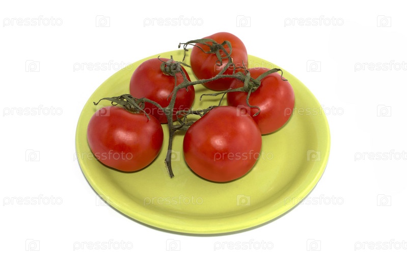 Ветка помидоров на круглой тарелке