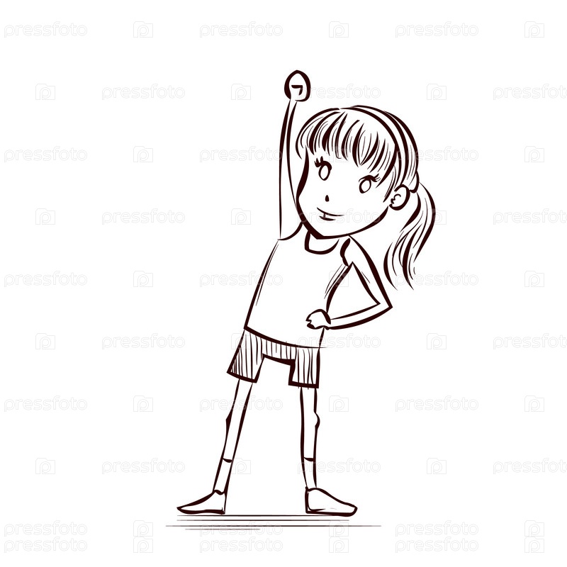 Девочка занимается спортом на белом фоне