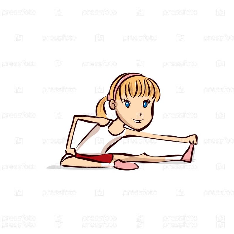 Девочка занимается спортом на белом фоне