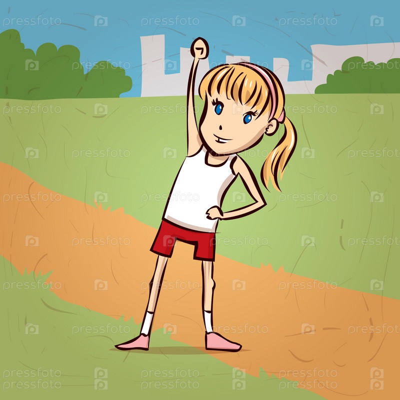 Девочка занимается спортом на белом фоне