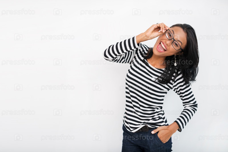 Жизнерадостная женщина в очках