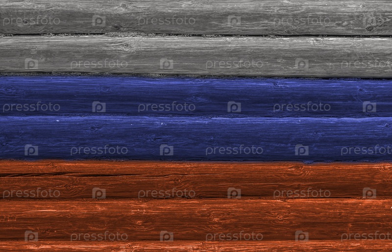 Стена из бревен цвета российского флага