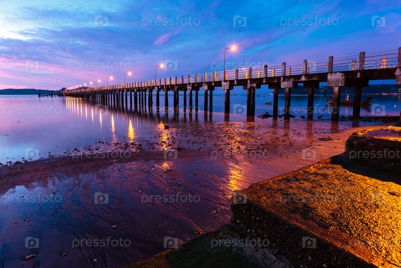 Красивый восход солнца на морском пирсе