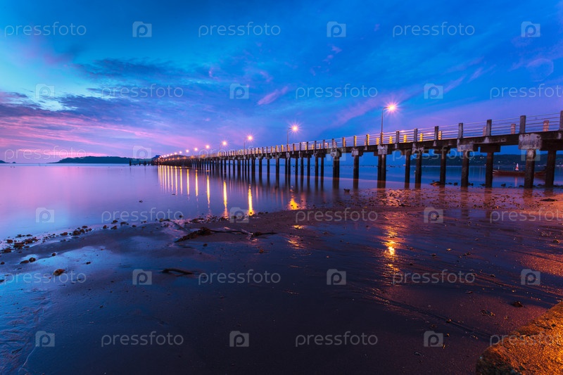 Красивый восход солнца на морском пирсе