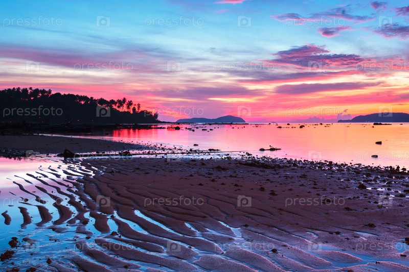 Красивый восход солнца на тропическом пляже