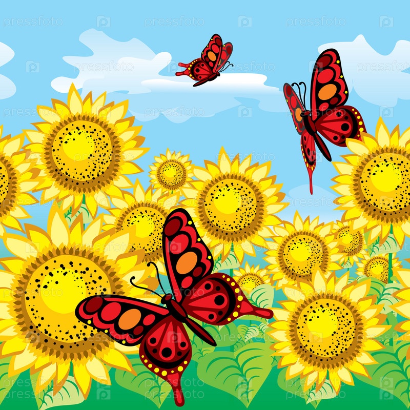 Бабочки и подсолнухи