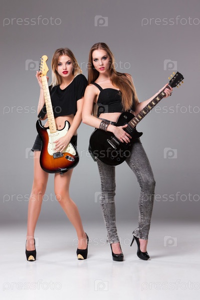 Две красивые девушки играют на гитарах