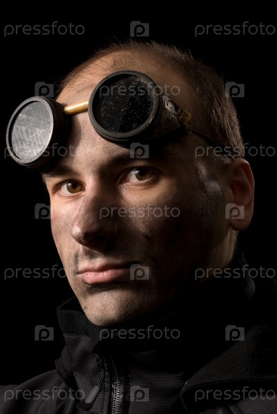 Близкий портрет человека с грязным лицом