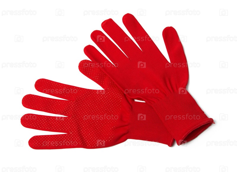 Пара красных перчаток на белом фоне