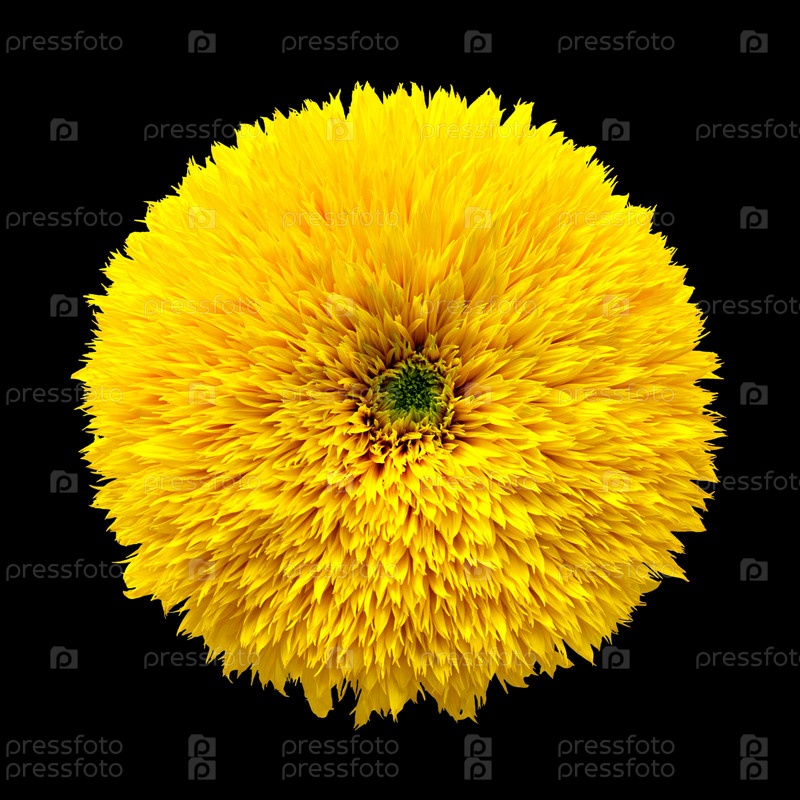 Махровый цветок подсолнечника на черном фоне