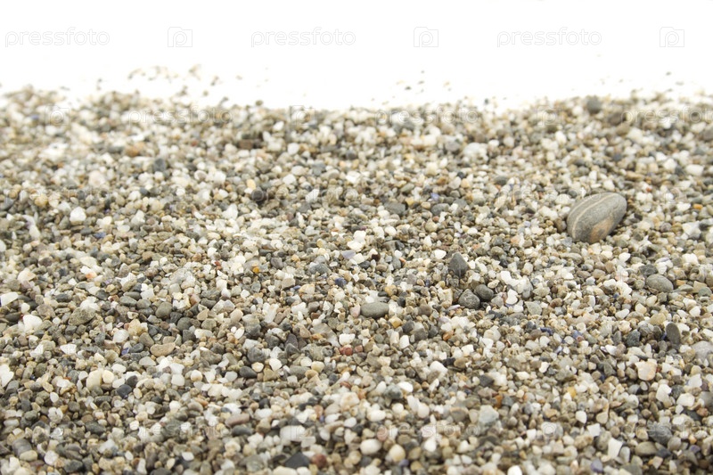 Мелкие морские камушки на белом фоне