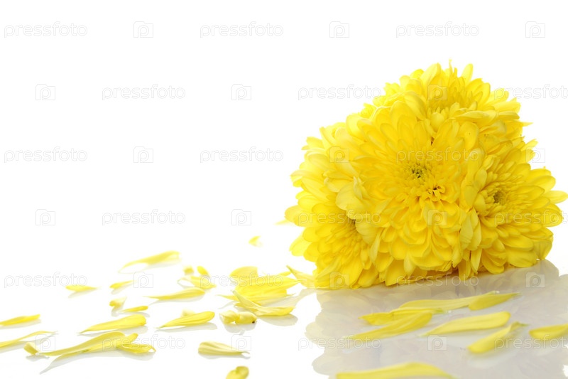 Букет желтых хризантем на белом фоне