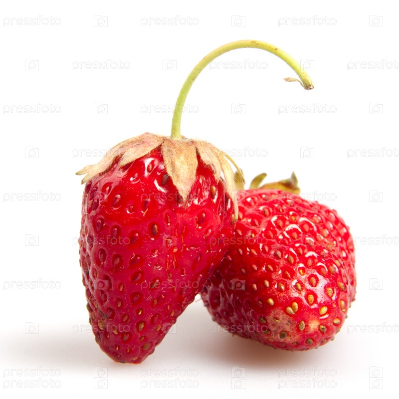 Две красные клубники на белом фоне