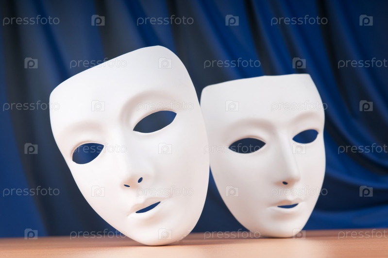 Две белые маски на синем фоне