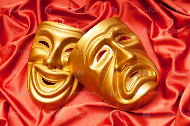 Две театральные маски на красном фоне
