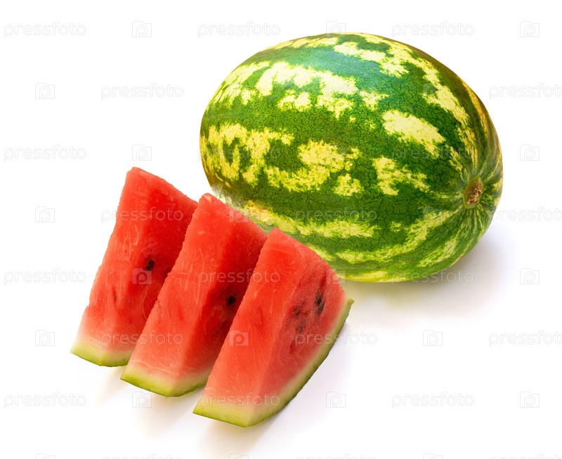 Арбуз и три ломтика на белом фоне