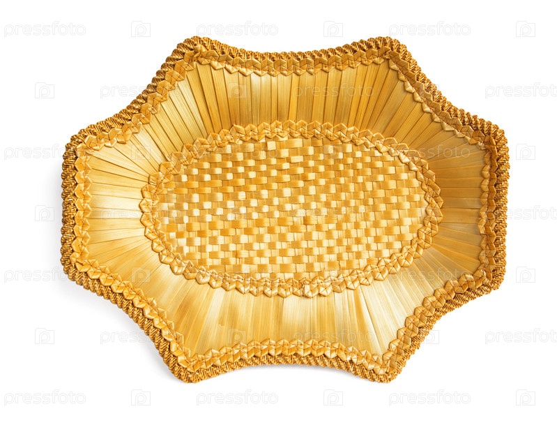 Плетеная тарелка на белом фоне
