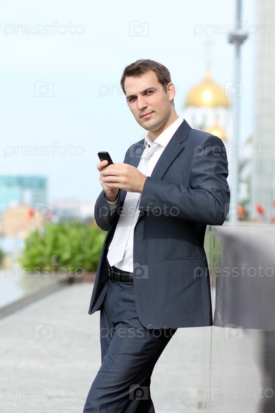 Молодой бизнесмен с мобильным телефоном в руках