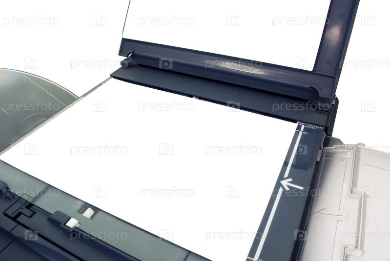 Открытый офисный ксерокс с пустым белым листом