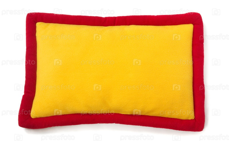 Желто-красная плюшевая подушка на белом фоне