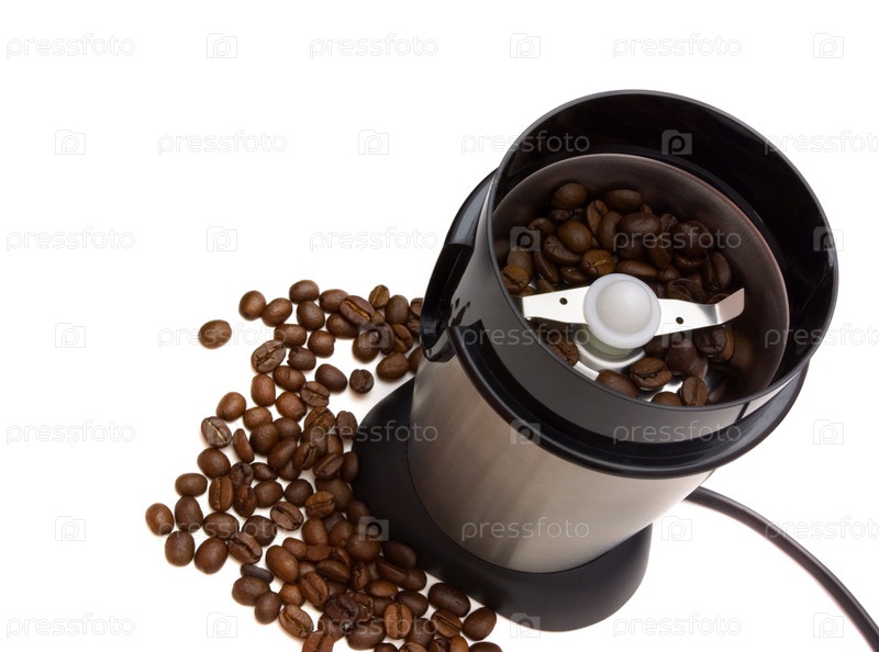 Электрическая кофемолка и кофейные зерна