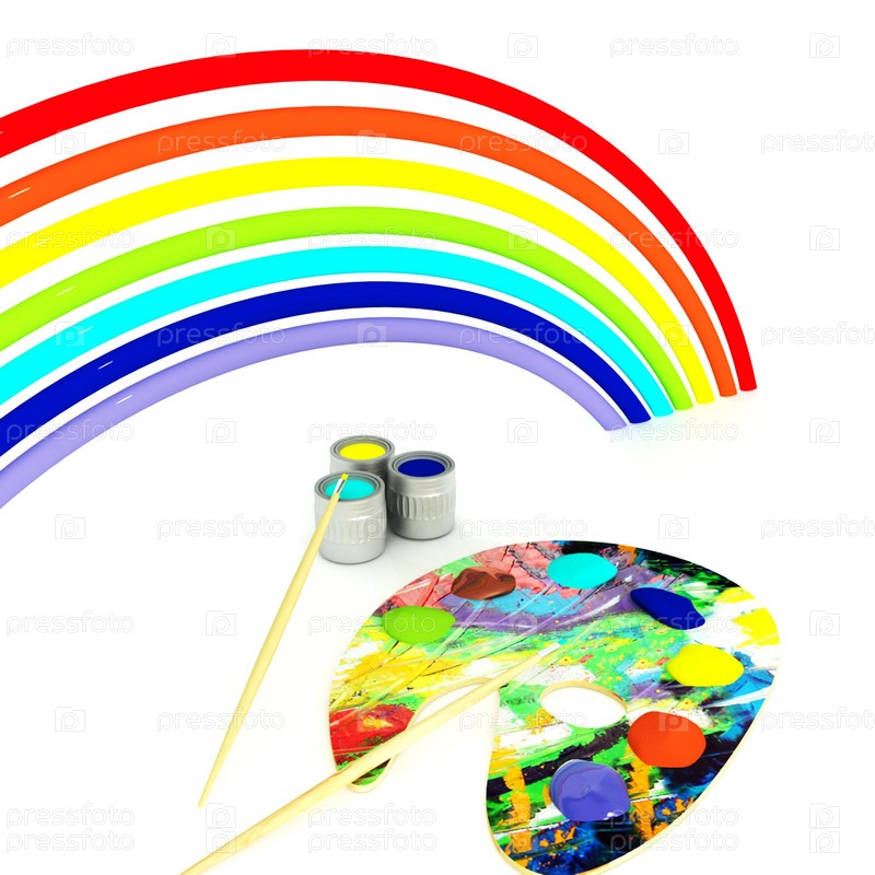 Палитра с красками и радуга