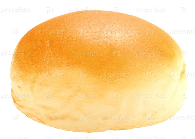 Круглая золотисто-коричневая булочка. Крупным планом. Изолированная на белом фоне. Студийная съемка