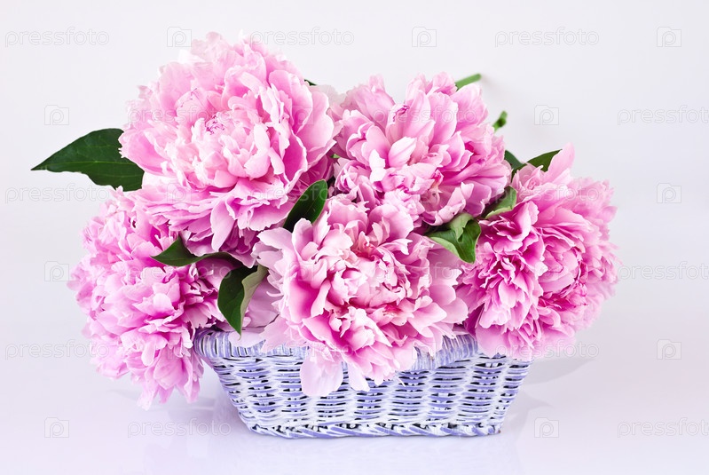 Корзина розовых пионов