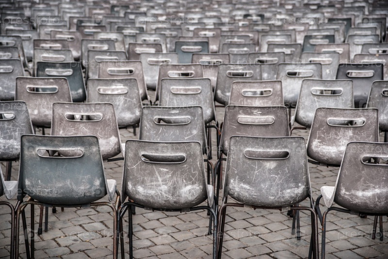 Ряды пустых пластиковых сидений на улице