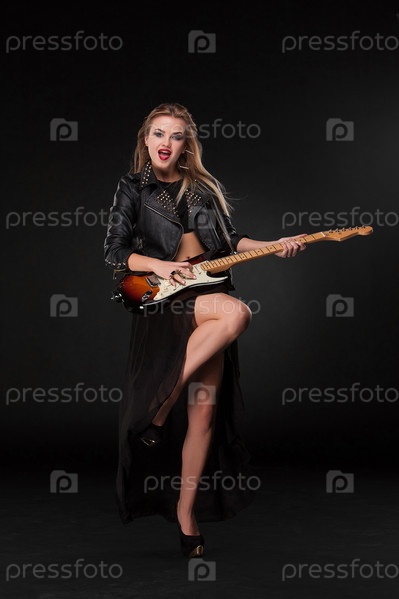 Красивая девушка играет на гитаре