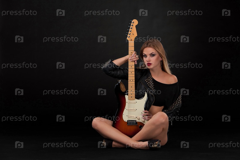 Красивая девушка играет на гитаре