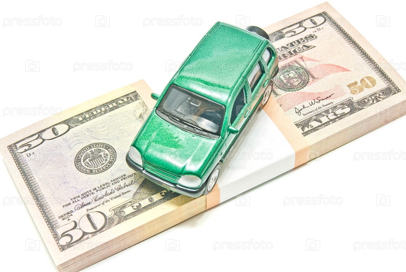 Зеленый автомобиль на купюры долларов