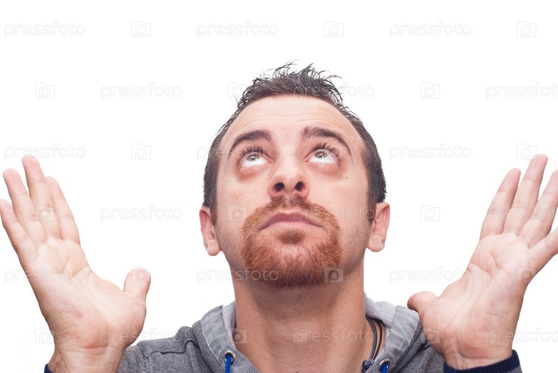 Мужчины с открытыми ладонями смотрит вверх