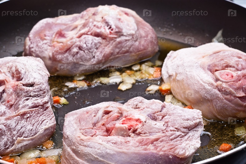 Посыпанное мукой оссо буко в сковороде