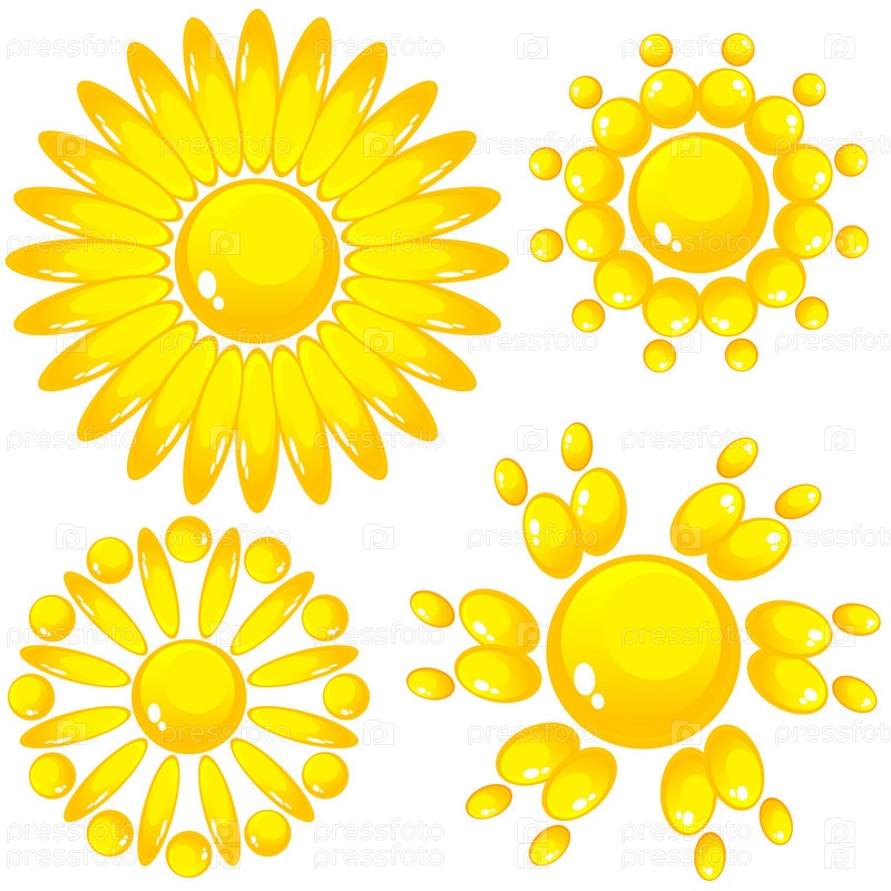 Четыре разных изображений солнца, изолированных на белом фоне