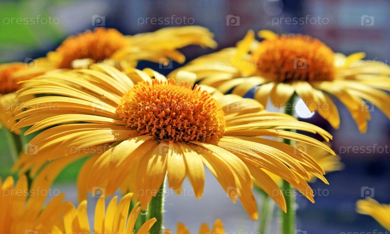 Ромашки в солнечный день на фоне города