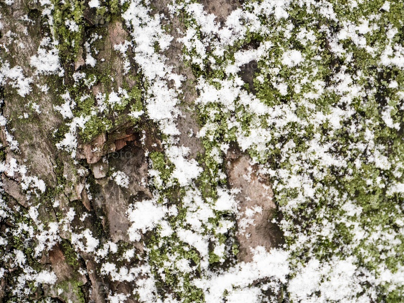 Бесшовная кора, поросшая мхом, в снегу