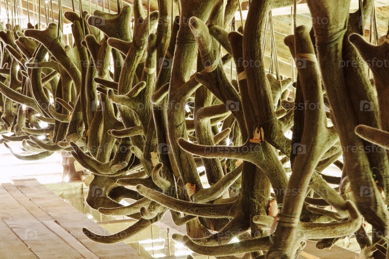 Обработка рогов оленя на ферме по производству лекарств