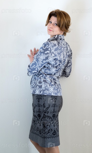 Женщина средних лет в пиджаке и юбке