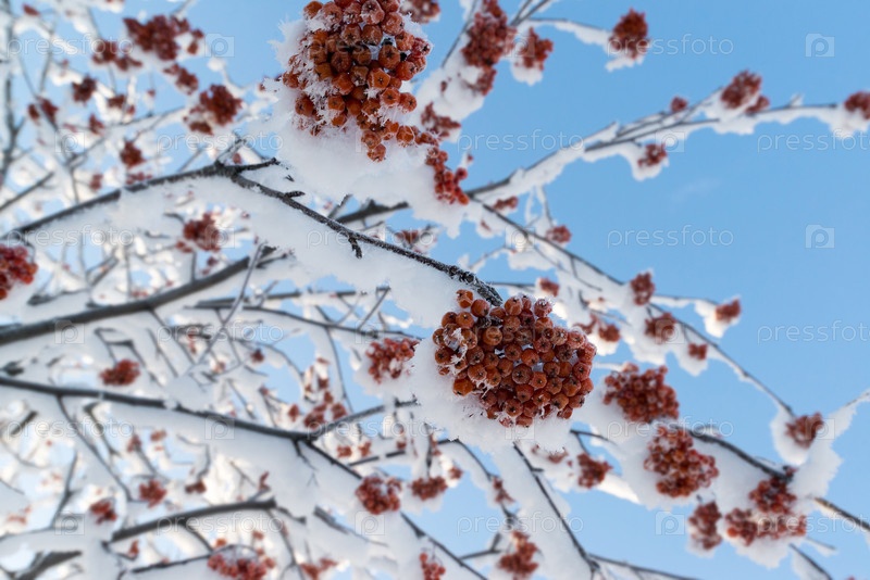 Заснеженные ветви рябины