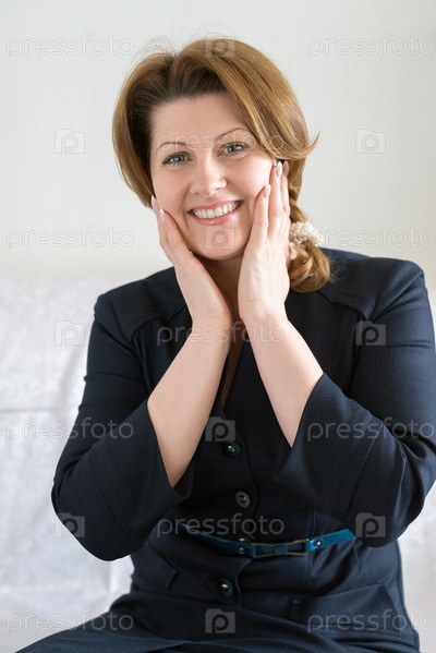 Красивая женщина в синем платье