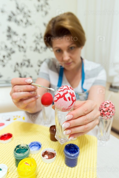 Женщина красит пасхальные яйца