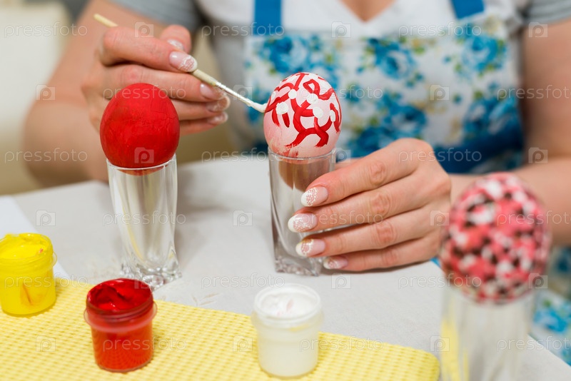 Женщина красит пасхальные яйца