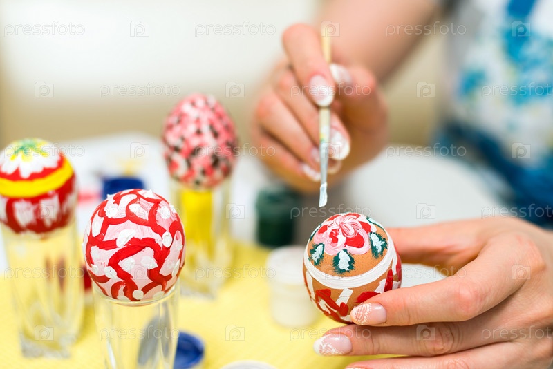 Женщина красит пасхальные яйца