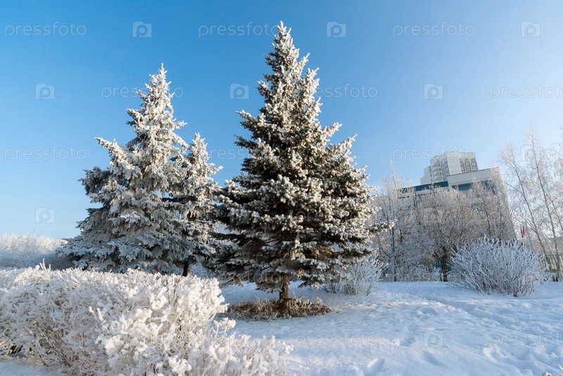 Заснеженные деревья в городе Москва, Россия
